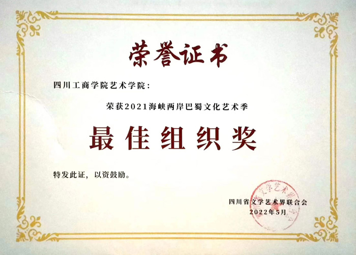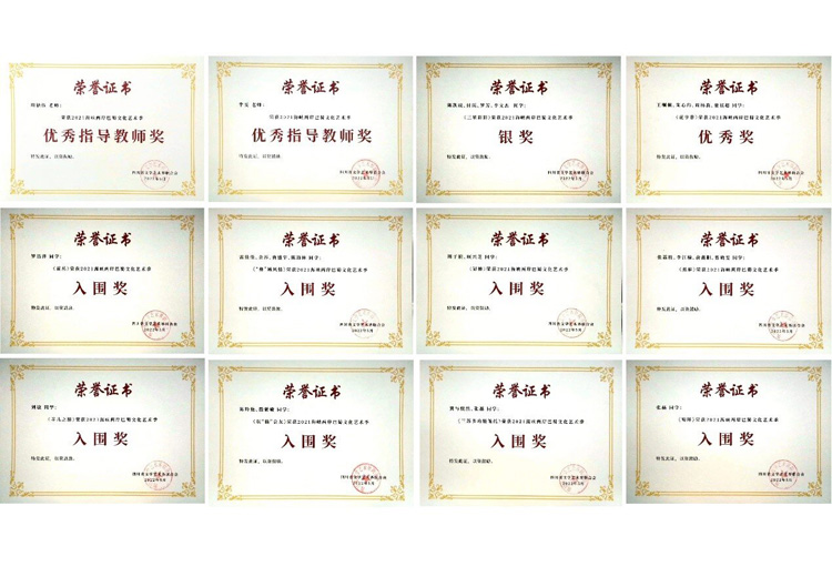 2021海峡两岸巴蜀文化创意设计大赛在2022年明媚的五月落下帷幕,艺术学院学子突破重围获得佳绩,其中银奖1项,优秀奖1项,入围奖8项,指导教师李雯、周德伍、张梅、周静获得优秀指导教师奖,四川工商学院艺术学院获得最佳组织奖!